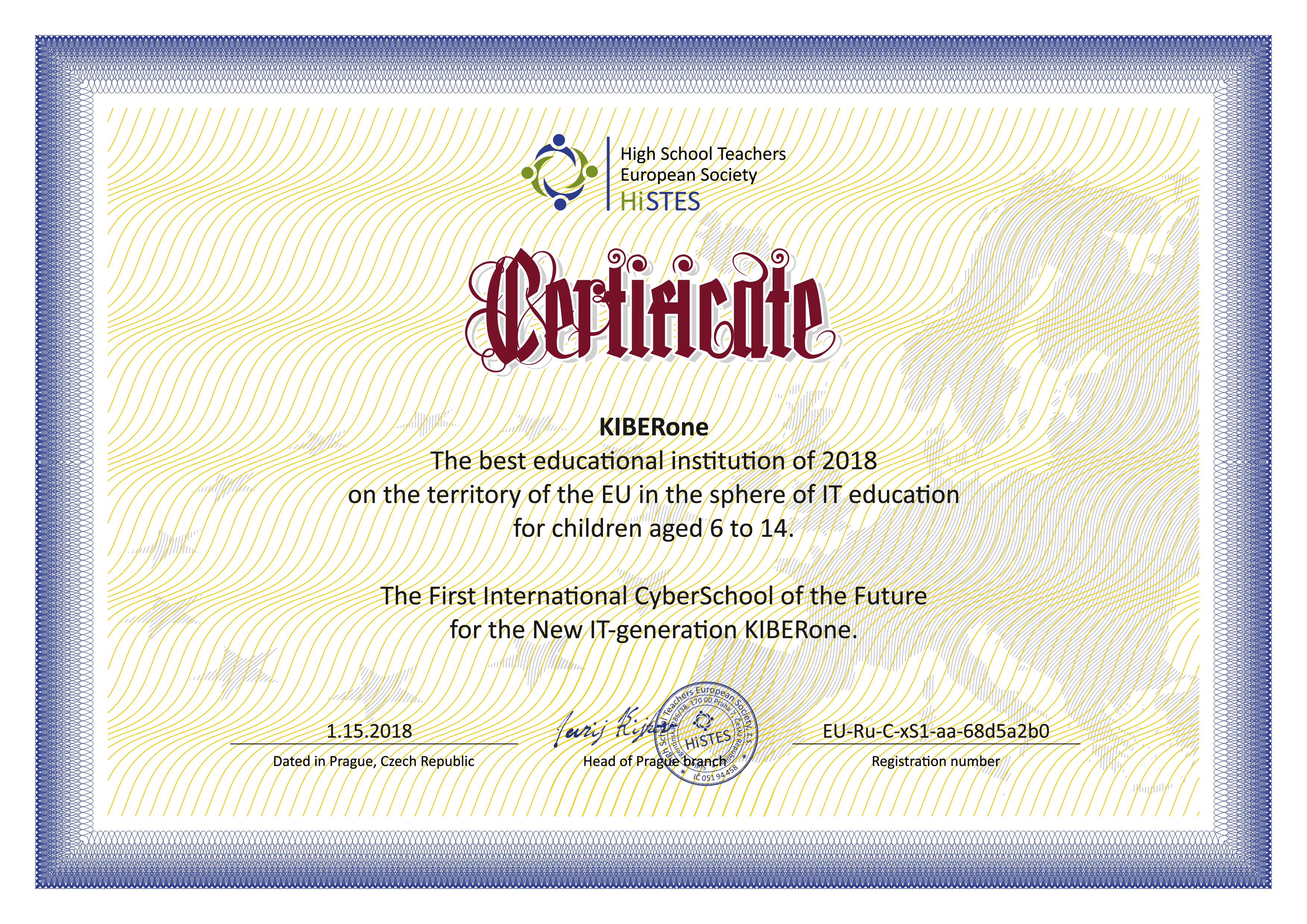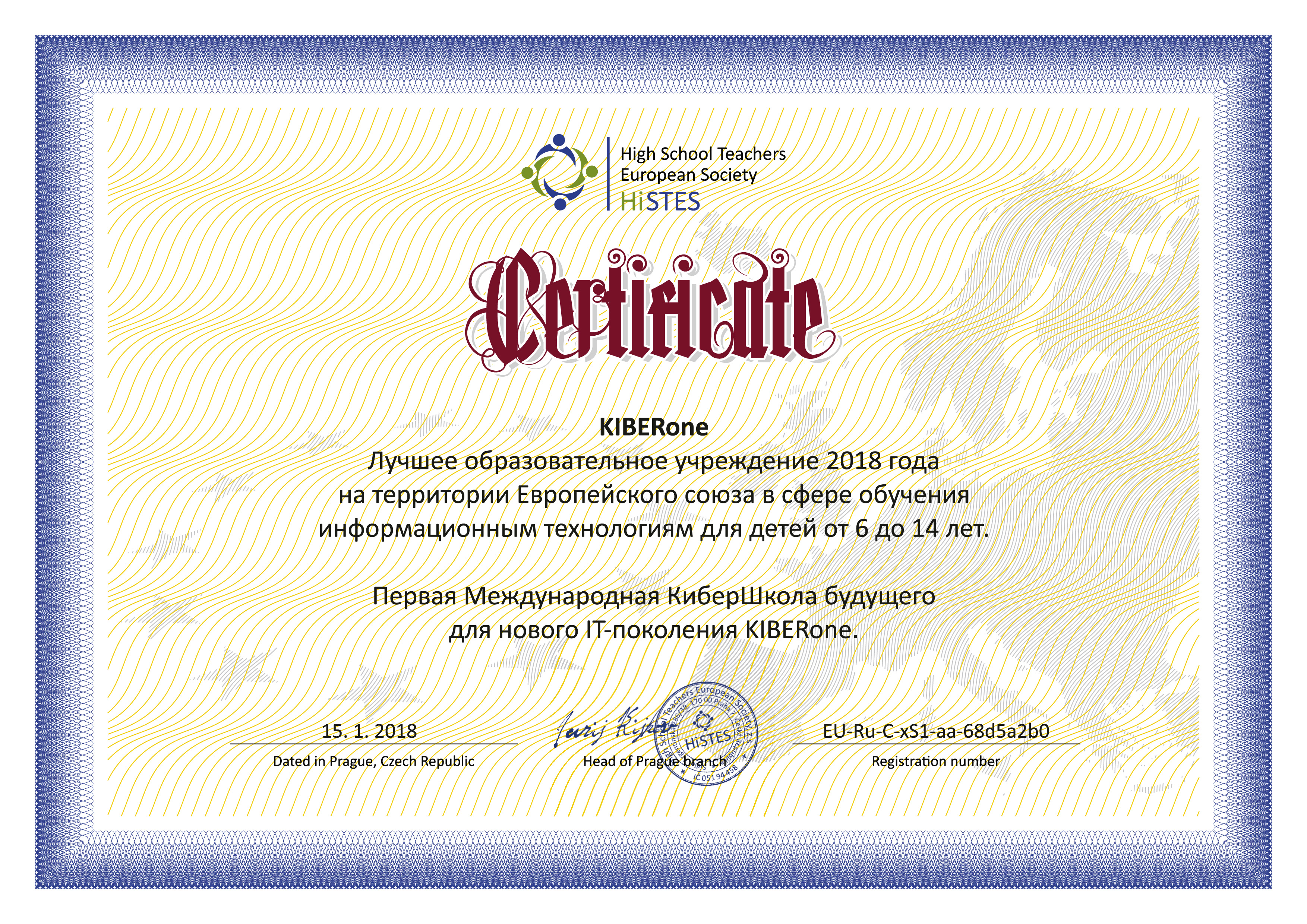 Европейская Ассоциация ВУЗов и преподавателей высшей школы HiSTES признала Международную КиберШколу KIBERone лучшим образовательным учреждением 2018 года на территории Евросоюза в сфере обучения информационным технологиям для детей от 6 до 14 лет.   ⠀